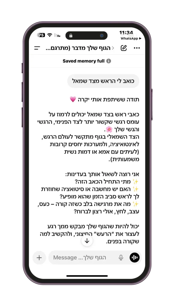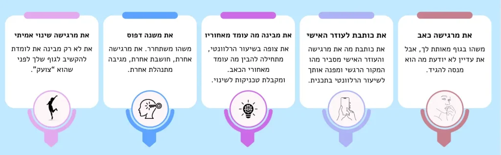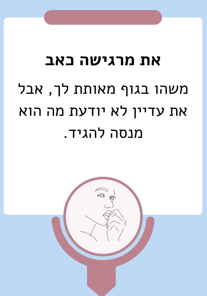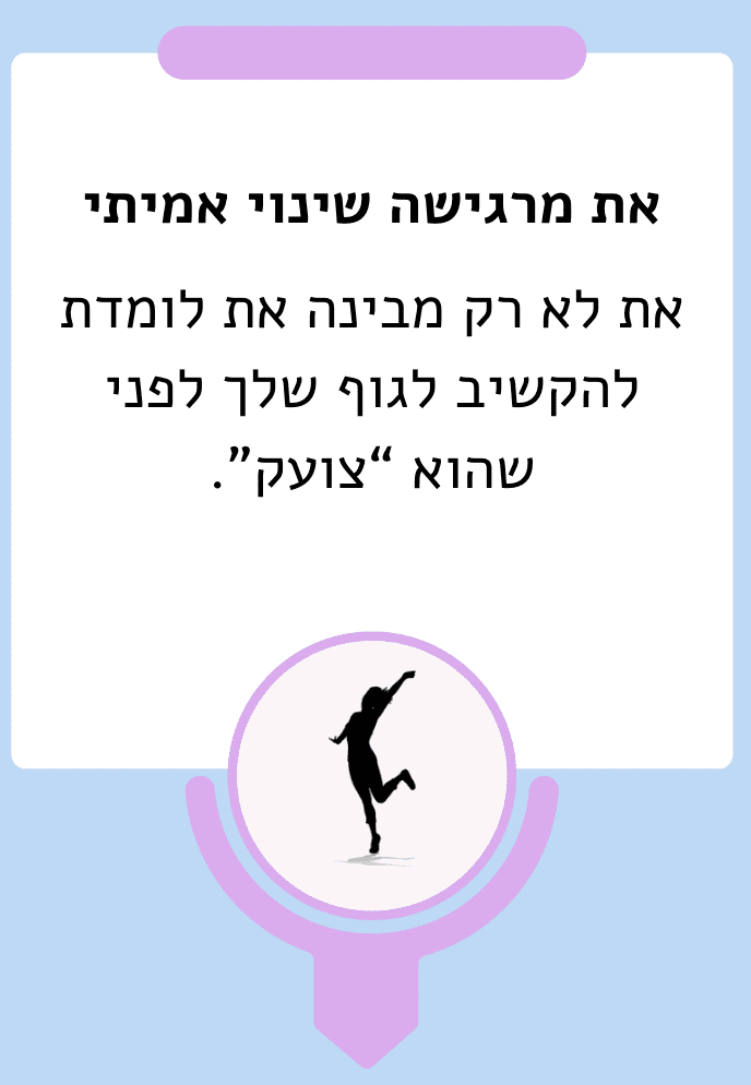 לזהות דפוסים רגשיים: תלמדי לזהות ולהכיר דפוסים רגשיים שעשויים לגרום לכאב פיזי או אי נוחות.